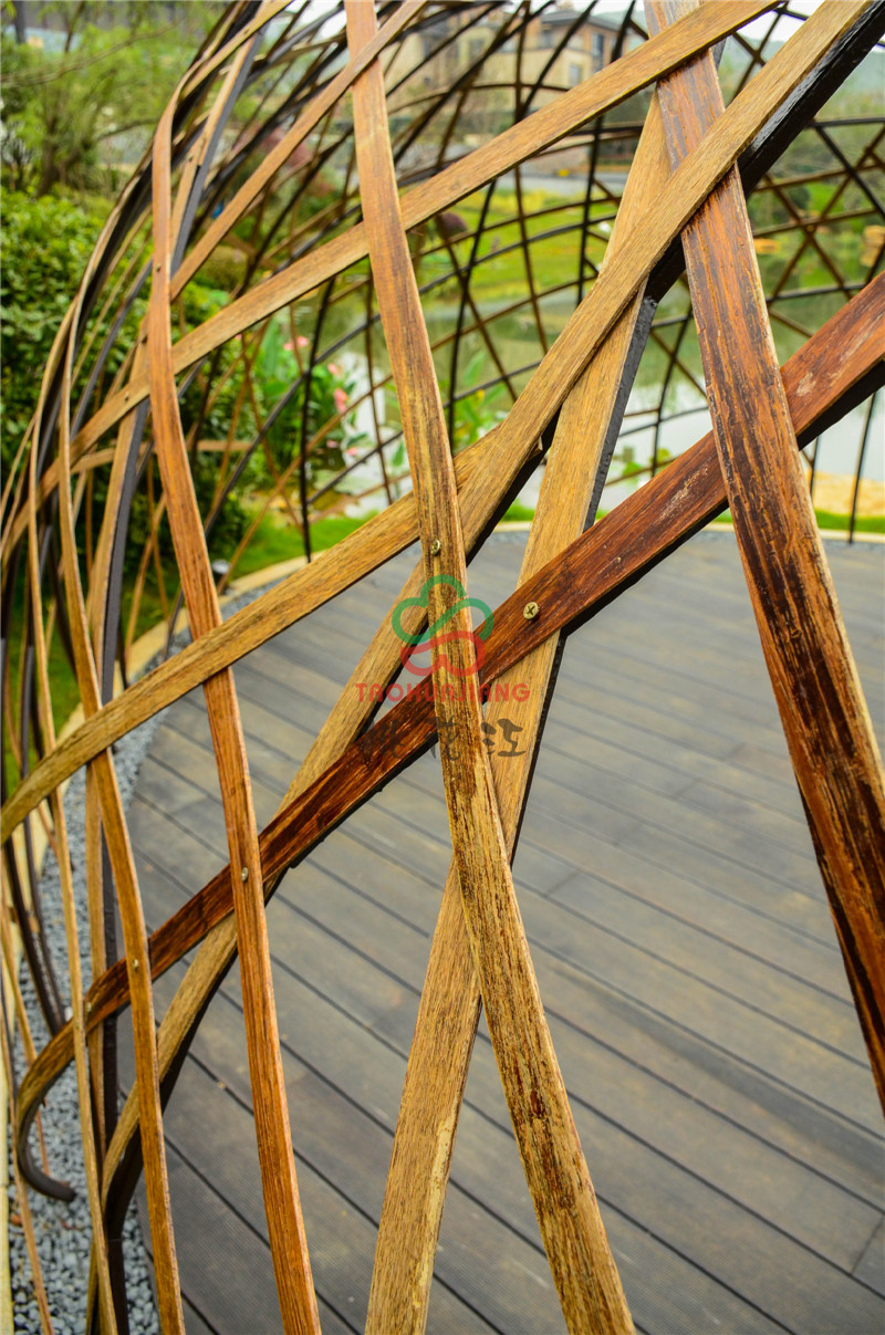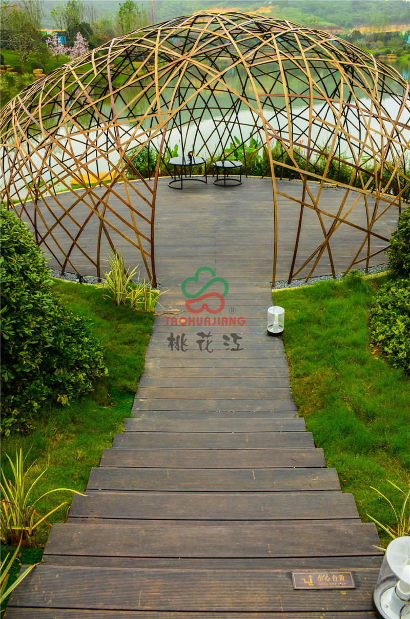 新城源山是南京新城在4A級(jí)景區(qū)-寶華山國(guó)家森林公園北門以東打造的山居純墅作品,項(xiàng)目?jī)?nèi)的綠化景觀道路鋪設(shè)了桃花江竹材科技的戶外高耐防腐竹地板,值一提的是景觀湖中間及周邊的球形設(shè)計(jì),材料均是由桃花江竹材科技的碳化竹片編制成而成,頗具時(shí)尚藝術(shù)氣息,寧可食無肉,不可居無竹,竹材的加入更加浸潤(rùn)著山水韻致與佛家禪意,仿若身處仙境,更寄托著現(xiàn)代都市人山湖情結(jié)的悠哉生活方式。