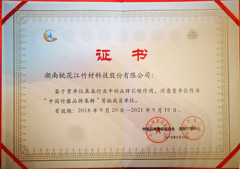 9月20日,"首屆中國(guó)集群品牌論壇"在京成功舉行。本次論壇發(fā)布的37個(gè)中國(guó)竹藤品牌中桃花江竹材科技位列其中,桃花江品牌成功入選"中國(guó)竹藤品牌集群"。